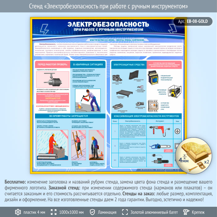 Стенд «Электробезопасность при работе с ручным инструментом» (EB-08-GOLD) в Улан-Удэ купить