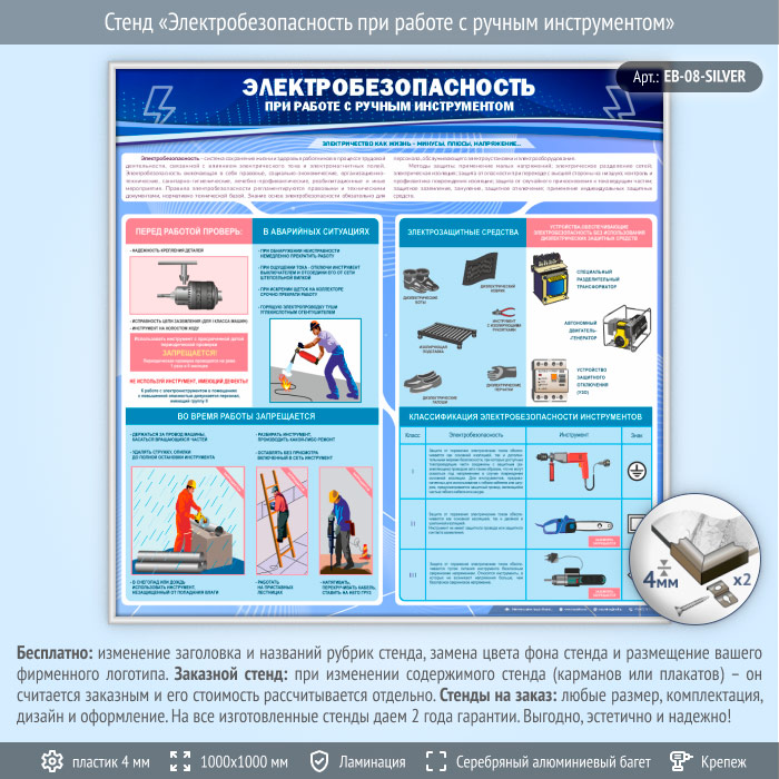 Стенд «Электробезопасность при работе с ручным инструментом» (EB-08-SILVER) в Улан-Удэ купить