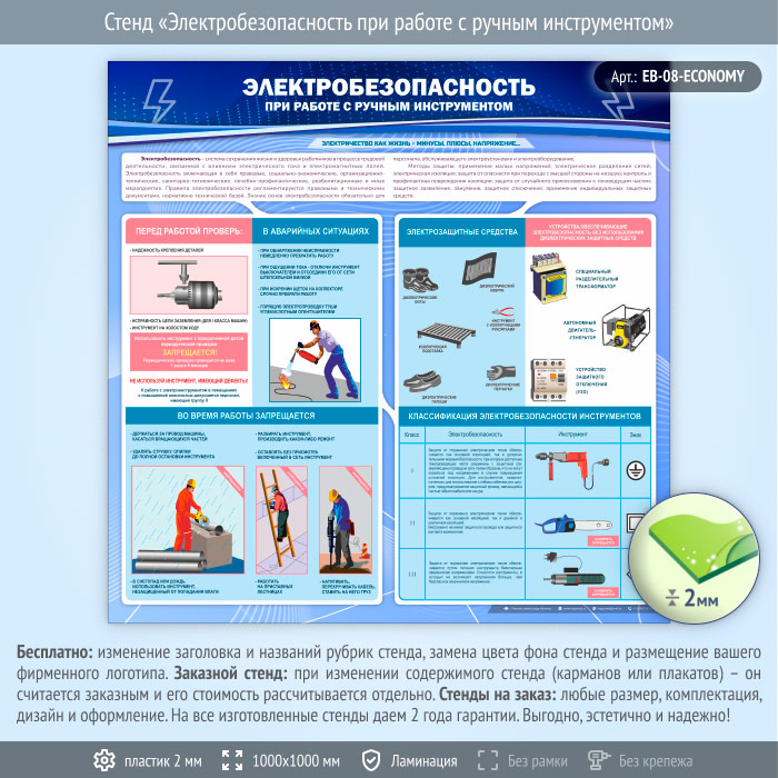 Стенд «Электробезопасность при работе с ручным инструментом» (EB-08-ECONOMY) в Улан-Удэ купить