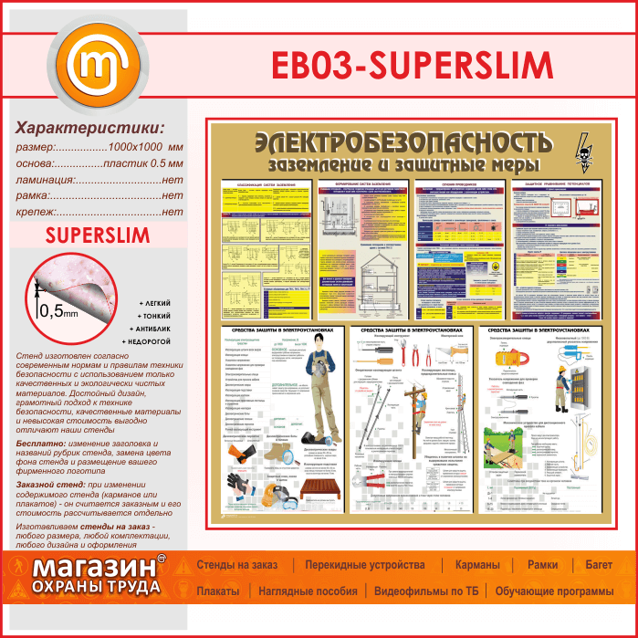 Стенд «Электробезопасность. Заземление и защитные меры» (EB-03-SUPERSLIM) в Улан-Удэ купить