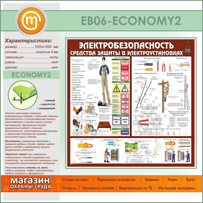 Стенд «Электробезопасность. Средства защиты в электроустановках» (EB-06-ECONOMY2) в Улан-Удэ купить