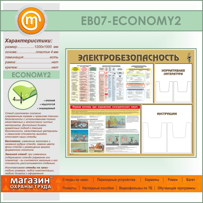 Стенд «Электробезопасность» с 4 объемными карманами (EB-07-ECONOMY2) в Улан-Удэ купить