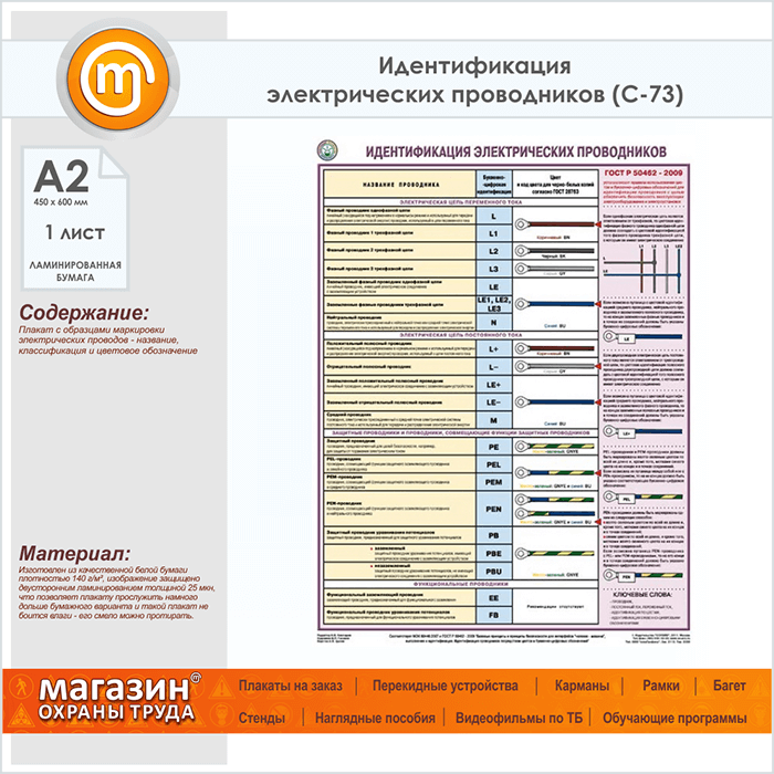 Плакат «Идентификация электрических проводников» (С-73, ламинированная бумага, А2, 1 лист) в Улан-Удэ купить