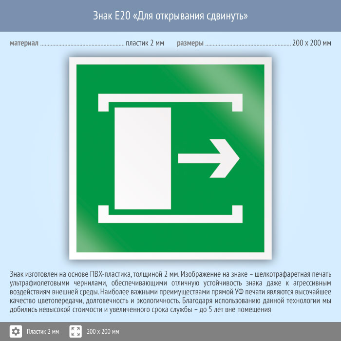 Знак E20 «Для открывания сдвинуть» (пластик, 200х200 мм) в Улан-Удэ купить