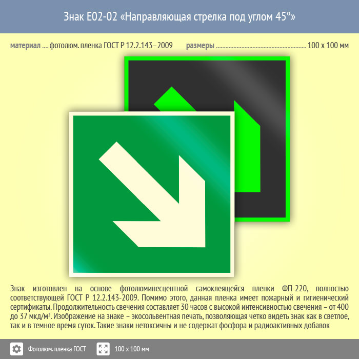 Знак E02-02 «Направляющая стрелка под углом 45°» (фотолюминесцентная пленка ГОСТ 34428-2018, 100х100 мм) в Улан-Удэ купить