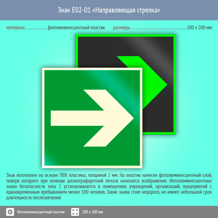 Знак E02-01 «Направляющая стрелка» (фотолюминесцентный пластик, 200х200 мм) в Улан-Удэ купить