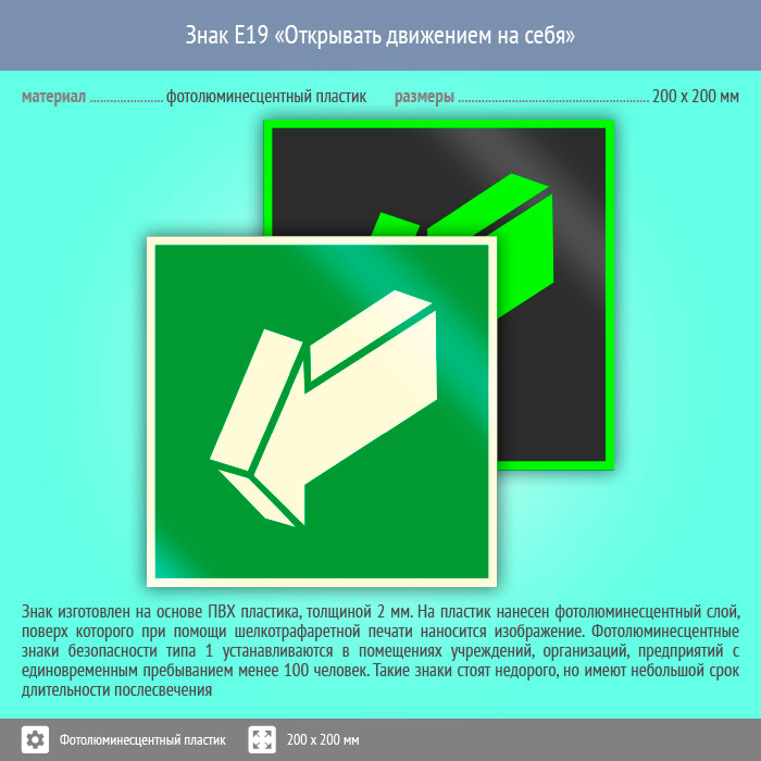 Знак E19 «Открывать движением на себя» (фотолюминесцентный пластик, 200х200 мм) в Улан-Удэ купить