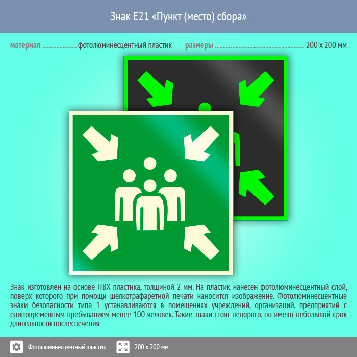 Знак E21 «Пункт (место) сбора» (фотолюминесцентный пластик, 200х200 мм) в Улан-Удэ купить