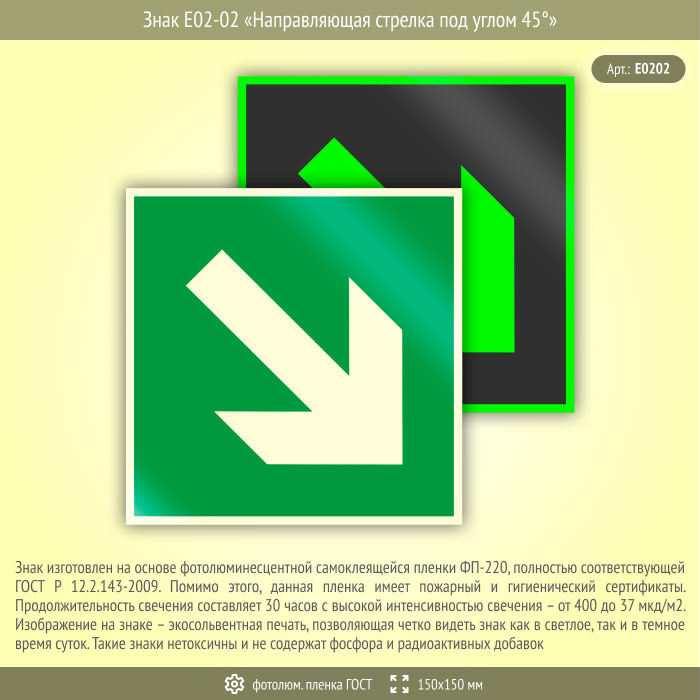 Знак E02-02 «Направляющая стрелка под углом 45°» (фотолюминесцентная пленка ГОСТ 34428-2018, 150х150 мм) в Улан-Удэ купить