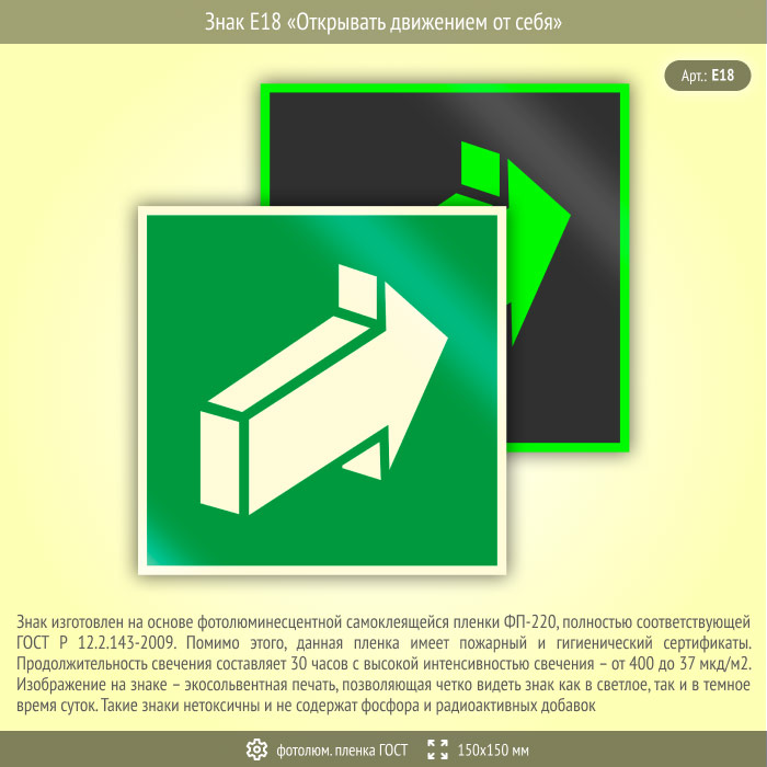 Знак E18 «Открывать движением от себя» (фотолюминесцентная пленка ГОСТ 34428-2018, 150х150 мм) в Улан-Удэ купить