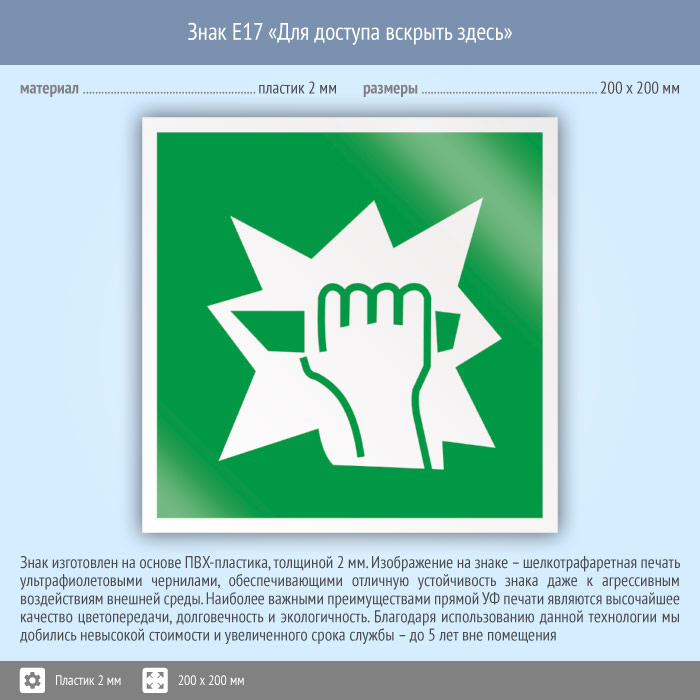 Знак E17 «Для доступа вскрыть здесь» (пластик, 200х200 мм) в Улан-Удэ купить