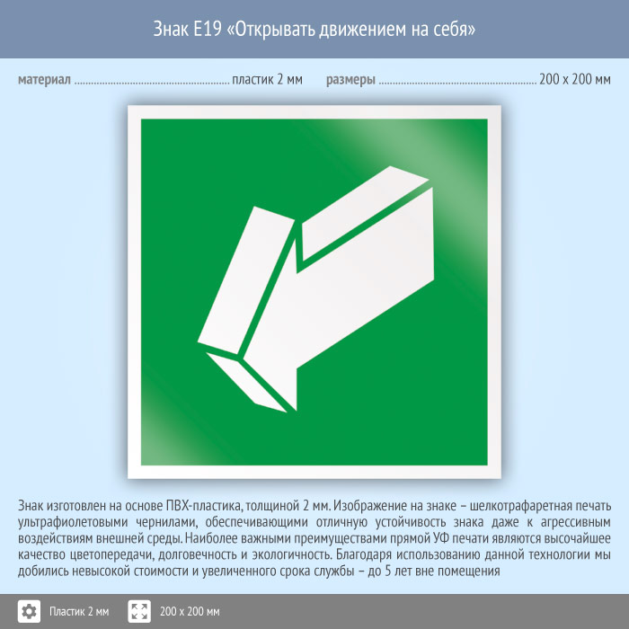 Знак E19 «Открывать движением на себя» (пластик, 200х200 мм) в Улан-Удэ купить