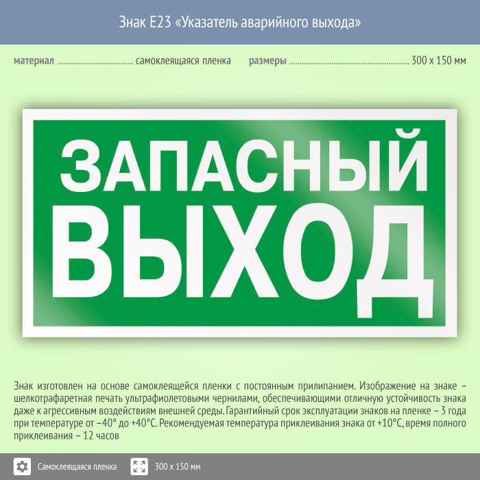 Знак E23 «Указатель запасного выхода» (устаревший) (пленка, 300х150 мм) в Улан-Удэ купить