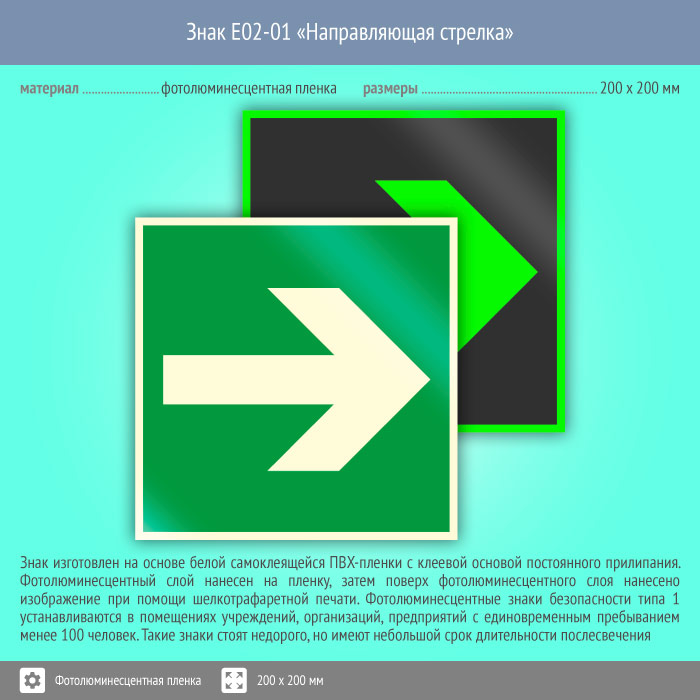 Знак E02-01 «Направляющая стрелка» (фотолюминесцентная пленка, 200х200 мм) в Улан-Удэ купить