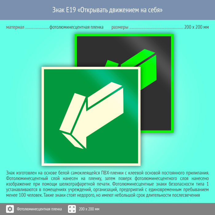 Знак E19 «Открывать движением на себя» (фотолюминесцентная пленка, 200х200 мм) в Улан-Удэ купить