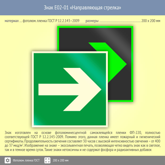 Знак E02-01 «Направляющая стрелка» (фотолюминесцентная пленка ГОСТ 34428-2018, 200х200 мм) в Улан-Удэ купить