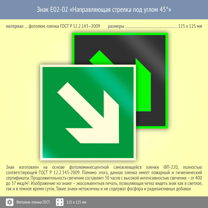 Знак E02-02 «Направляющая стрелка под углом 45°» (фотолюминесцентная пленка ГОСТ 34428-2018, 125х125 мм) в Улан-Удэ купить