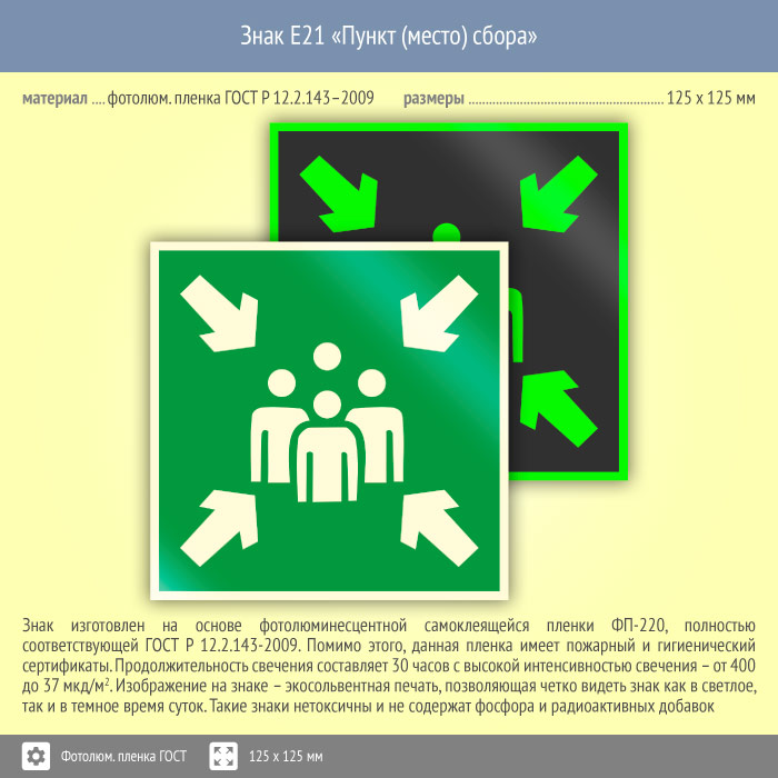 Знак E21 «Пункт (место) сбора» (фотолюминесцентная пленка ГОСТ 34428-2018, 125х125 мм) в Улан-Удэ купить