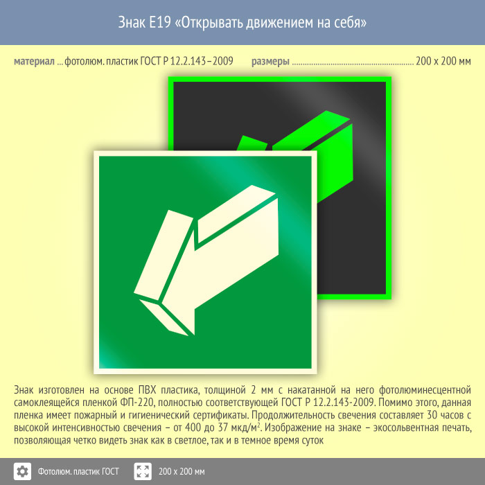 Знак E19 «Открывать движением на себя» (фотолюминесцентный пластик ГОСТ 34428-2018, 200х200 мм) в Улан-Удэ купить