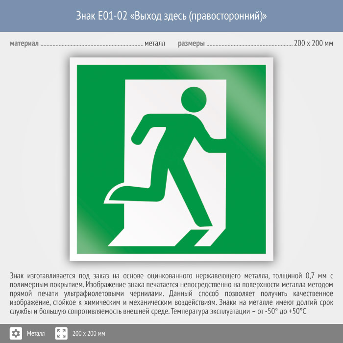 Знак E01-02 «Выход здесь (правосторонний)» (металл, 200х200 мм) в Улан-Удэ купить