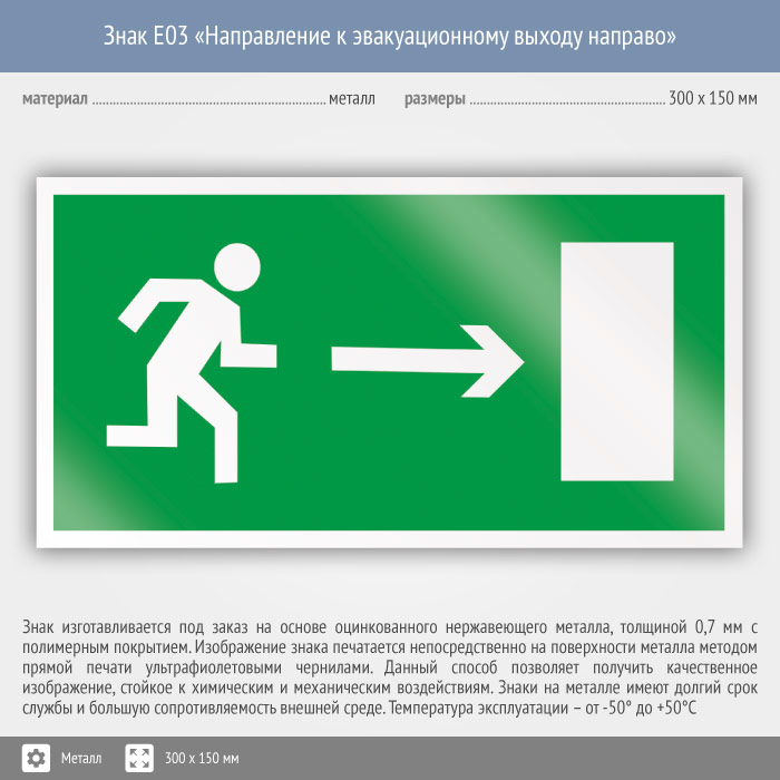 Знак E03 «Направление к эвакуационному выходу направо» (металл, 300х150 мм) в Улан-Удэ купить