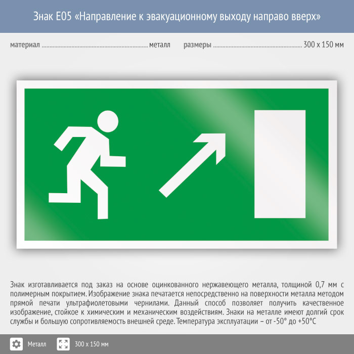 Знак E05 «Направление к эвакуационному выходу направо вверх» (металл, 300х150 мм) в Улан-Удэ купить