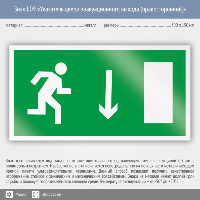 Знак E09 «Указатель двери эвакуационного выхода (правосторонний)» (металл, 300х150 мм) в Улан-Удэ купить