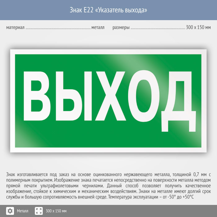 Знак E22 «Указатель выхода» (металл, 300х150 мм) в Улан-Удэ купить