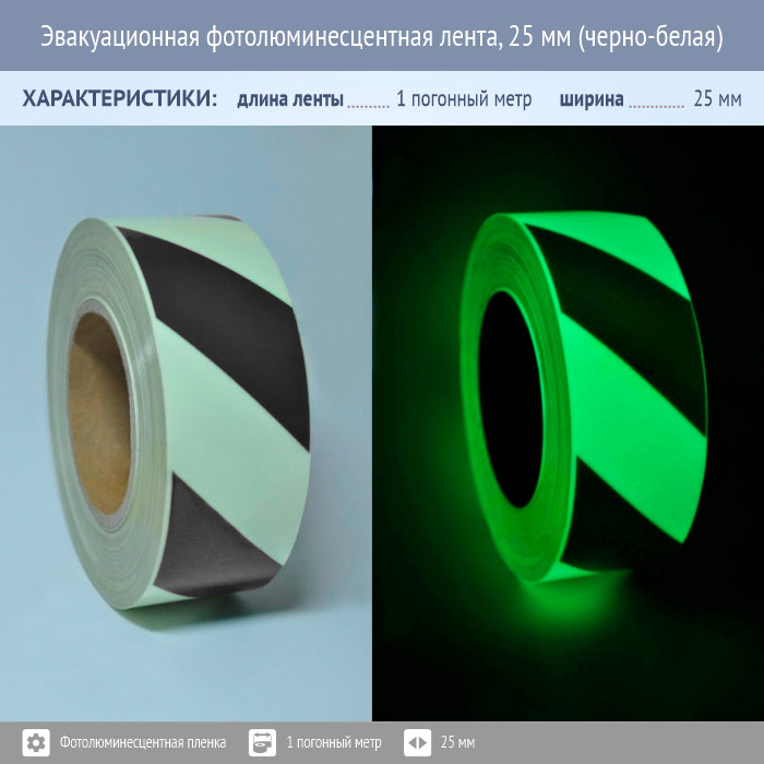 Эвакуационная фотолюминесцентная лента, 25 мм (черно-белая) в Улан-Удэ купить