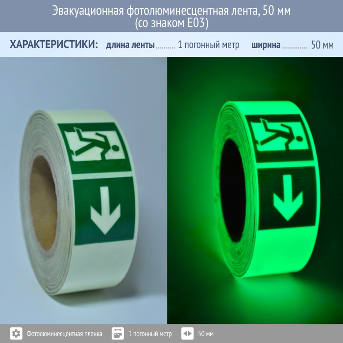 Эвакуационная фотолюминесцентная лента, 50 мм (со знаком E03) в Улан-Удэ купить