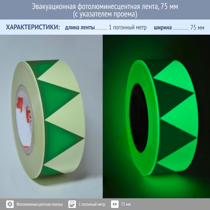 Эвакуационная фотолюминесцентная лента, 75 мм (с указателем проема) в Улан-Удэ купить