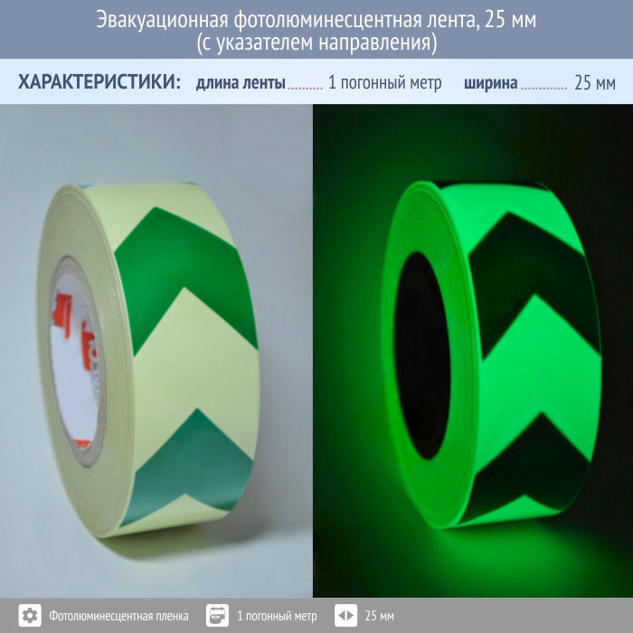 Эвакуационная фотолюминесцентная лента, 25 мм (с указателем направления) в Улан-Удэ купить
