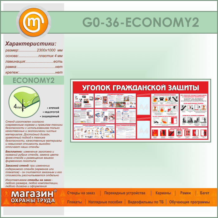 Стенд «Уголок гражданской защиты» c 2 карманами (GO-36-ECONOMY2) в Улан-Удэ купить