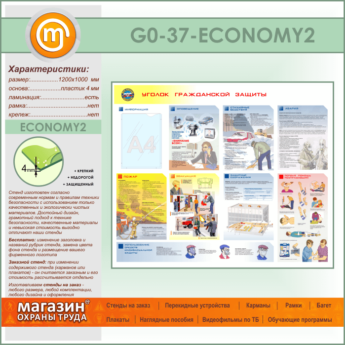 Стенд «Уголок гражданской защиты» с карманом (GO-37-ECONOMY2) в Улан-Удэ купить