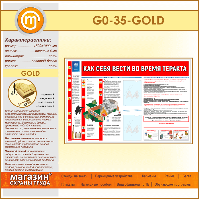 Стенд «Как себя вести во время теракта» c 2 карманами (GO-35-GOLD) в Улан-Удэ купить
