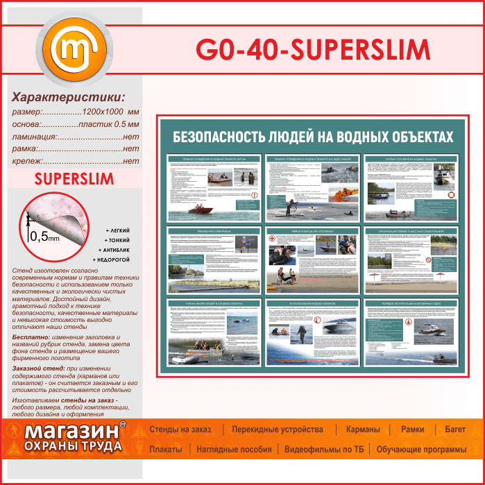 Стенд «Безопасность людей на водных объектах» (GO-40-SUPERSLIM) в Улан-Удэ купить