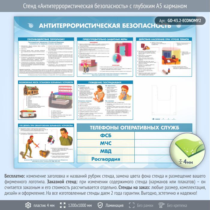 Стенд «Антитеррористическая безопасность» с глубоким А5 карманом (GO-43.2-ECONOMY2) в Улан-Удэ купить