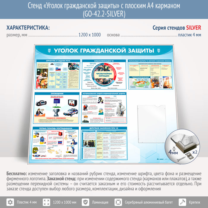 Стенд «Уголок гражданской защиты» с плоским А4 карманом (GO-42.2-SILVER) в Улан-Удэ купить