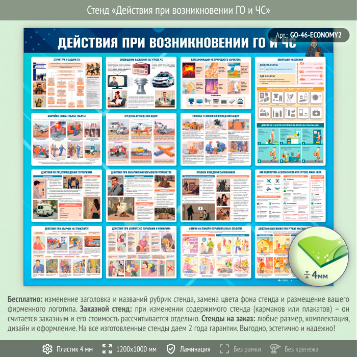 Стенд «Действия при возникновении ГО и ЧС» (GO-46-ECONOMY2) в Улан-Удэ купить