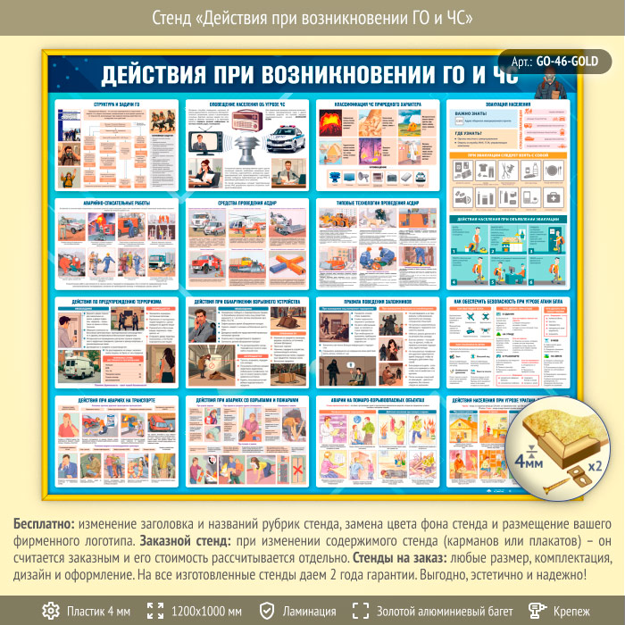 Стенд «Действия при возникновении ГО и ЧС» (GO-46-GOLD) в Улан-Удэ купить