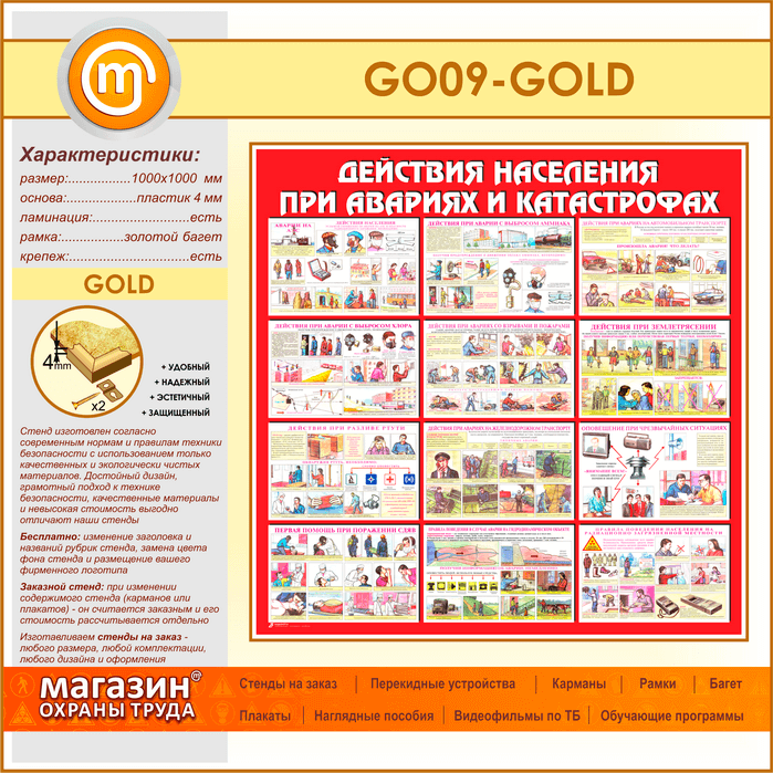 Стенд «Действия населения при авариях и катастрофах» (GO-09-GOLD) в Улан-Удэ купить