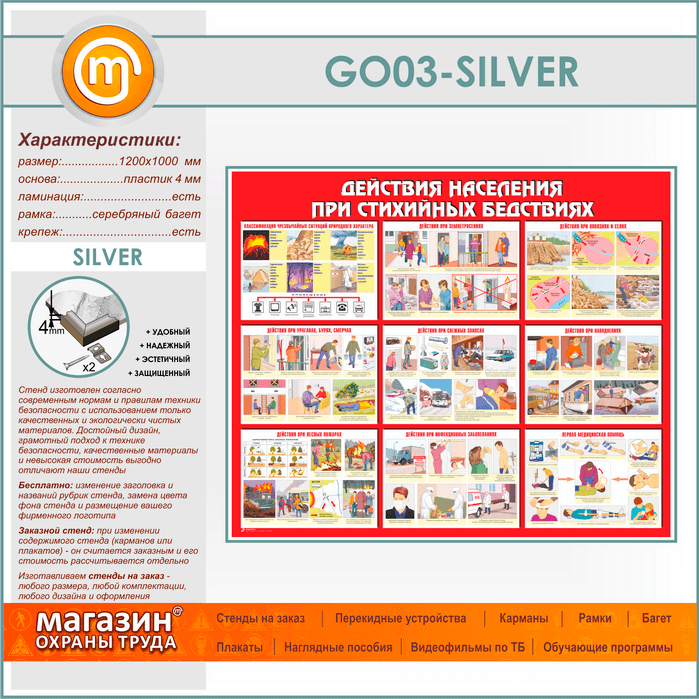 Стенд «Действия населения при стихийных бедствиях» (GO-03-SILVER) в Улан-Удэ купить