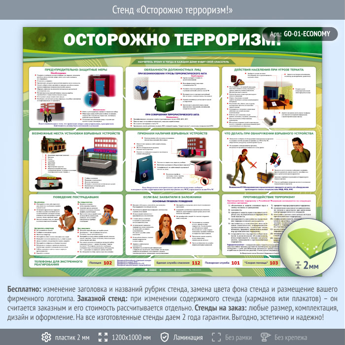 Стенд «Осторожно терроризм!» (GO-01-ECONOMY) в Улан-Удэ купить