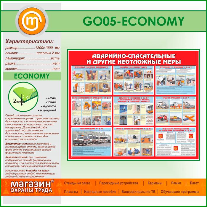 Стенд «Аварийно-спасательные и другие неотложные меры» (GO-05-ECONOMY) в Улан-Удэ купить