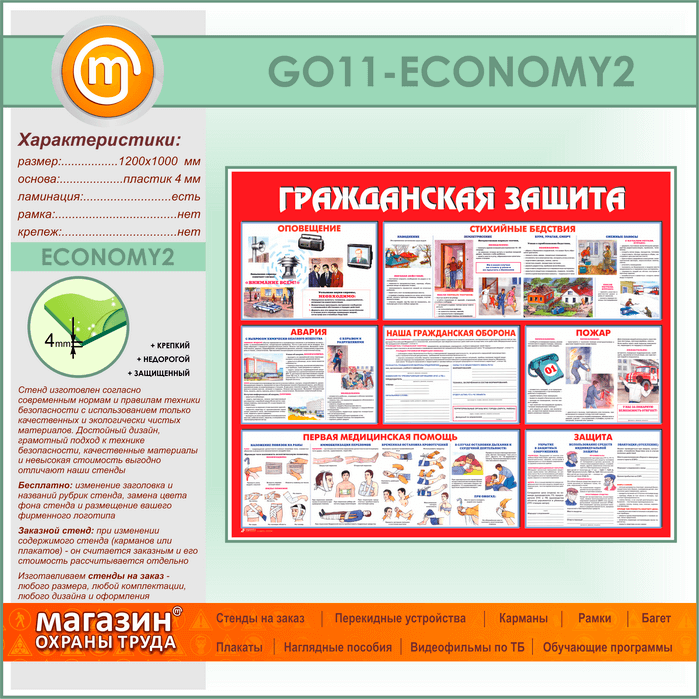 Стенд «Гражданская защита» (GO-11-ECONOMY2) в Улан-Удэ купить