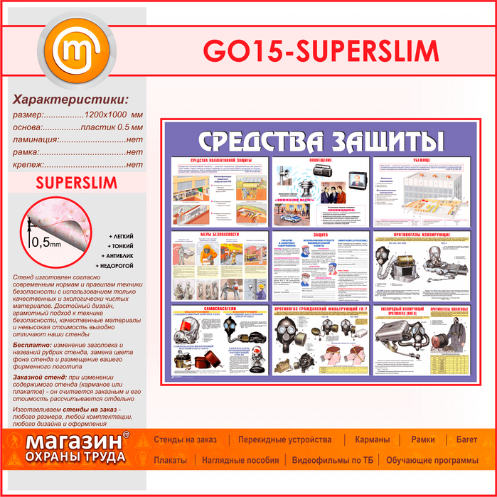 Стенд «Средства защиты» (GO-15-SUPERSLIM) в Улан-Удэ купить
