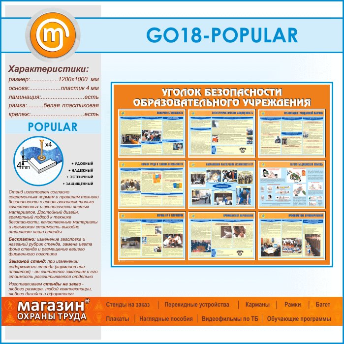 Стенд «Уголок безопасности образовательного учреждения» (GO-18-POPULAR) в Улан-Удэ купить