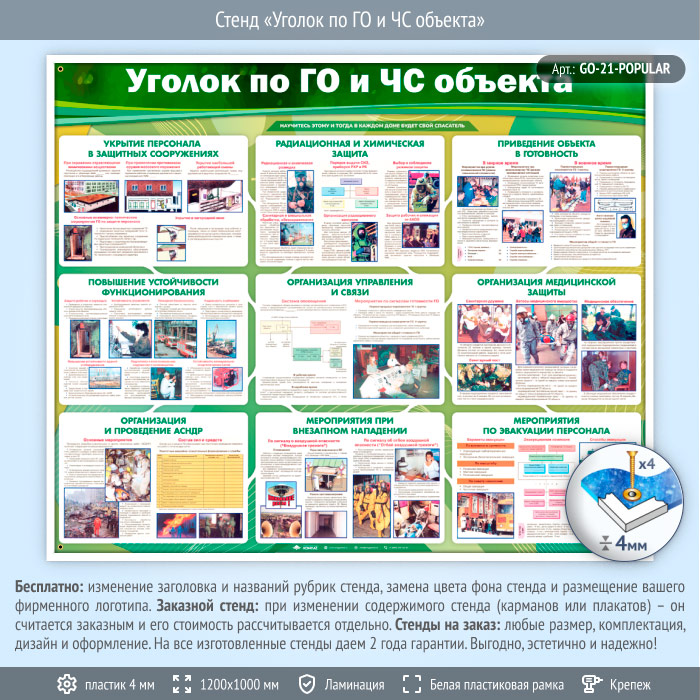 Стенд «Уголок по ГО и ЧС объекта» (GO-21-POPULAR) в Улан-Удэ купить