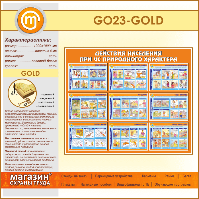 Стенд «Действия населения при ЧС природного характера» (GO-23-GOLD) в Улан-Удэ купить