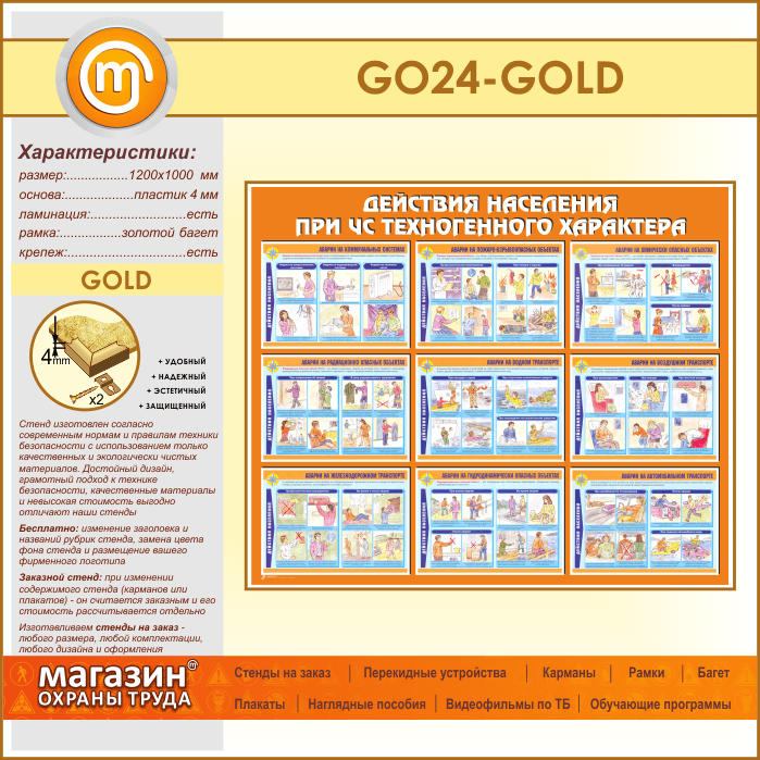 Стенд «Действия населения при ЧС техногенного характера» (GO-24-GOLD) в Улан-Удэ купить